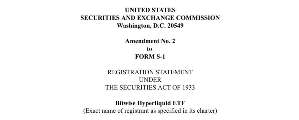 Công ty quản lý tài sản kỹ thuật số Bitwise Asset Management vừa thực hiện điều chỉnh quan trọng trong hồ sơ đăng ký quỹ ETF liên quan đến nền tảng Hyperliquid, theo nguồn tin từ PANews. Động thái này đang thu hút sự chú ý lớn từ giới đầu tư, khi nó có thể báo hiệu thời điểm ra mắt chính thức đang đến gần.