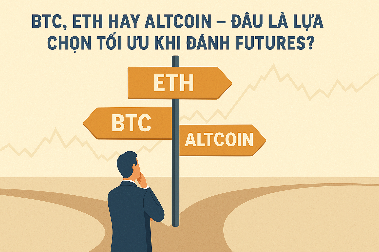 Trong thị trường crypto, đặc biệt mảng futures trading, câu hỏi muôn thuở của trader Việt là: Nên chọn BTC, ETH hay Altcoin để vào lệnh? Mỗi loại tài sản đều có ưu – nhược điểm riêng, phụ thuộc vào mục tiêu và khẩu vị rủi ro của từng người.
