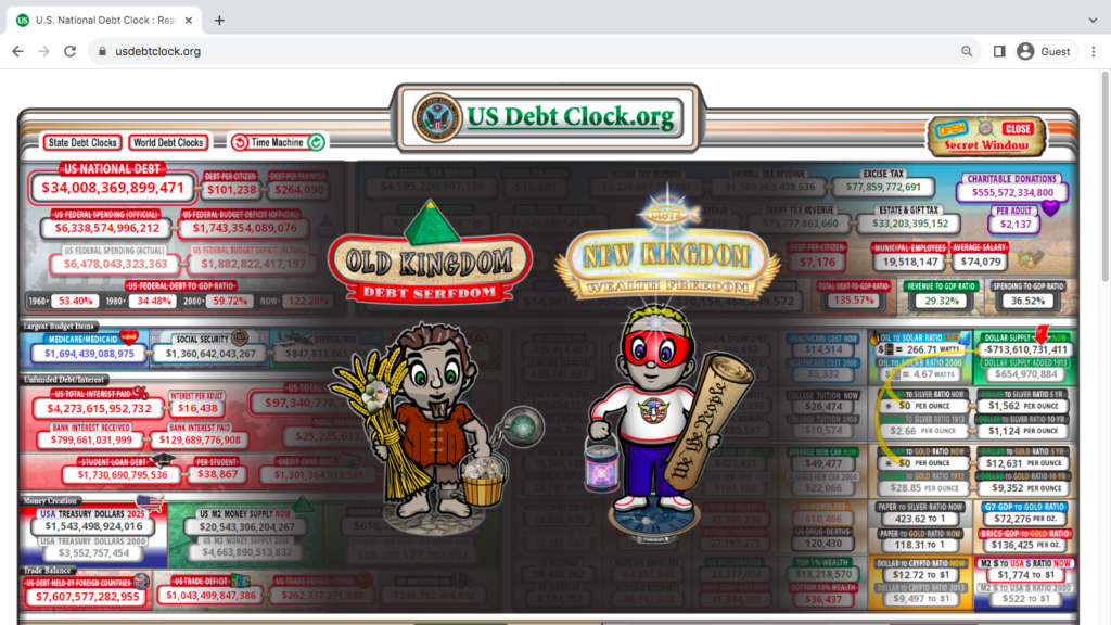 Chà, nước Mỹ bước vào năm mới với mức nợ cao hơn bao giờ hết. Thật vậy, ở mức 34 nghìn tỷ USD, khoản nợ của Hoa Kỳ gấp 1,2 lần sản lượng kinh tế hàng năm, cao hơn tỷ lệ 1,1 có từ Thế chiến thứ hai.