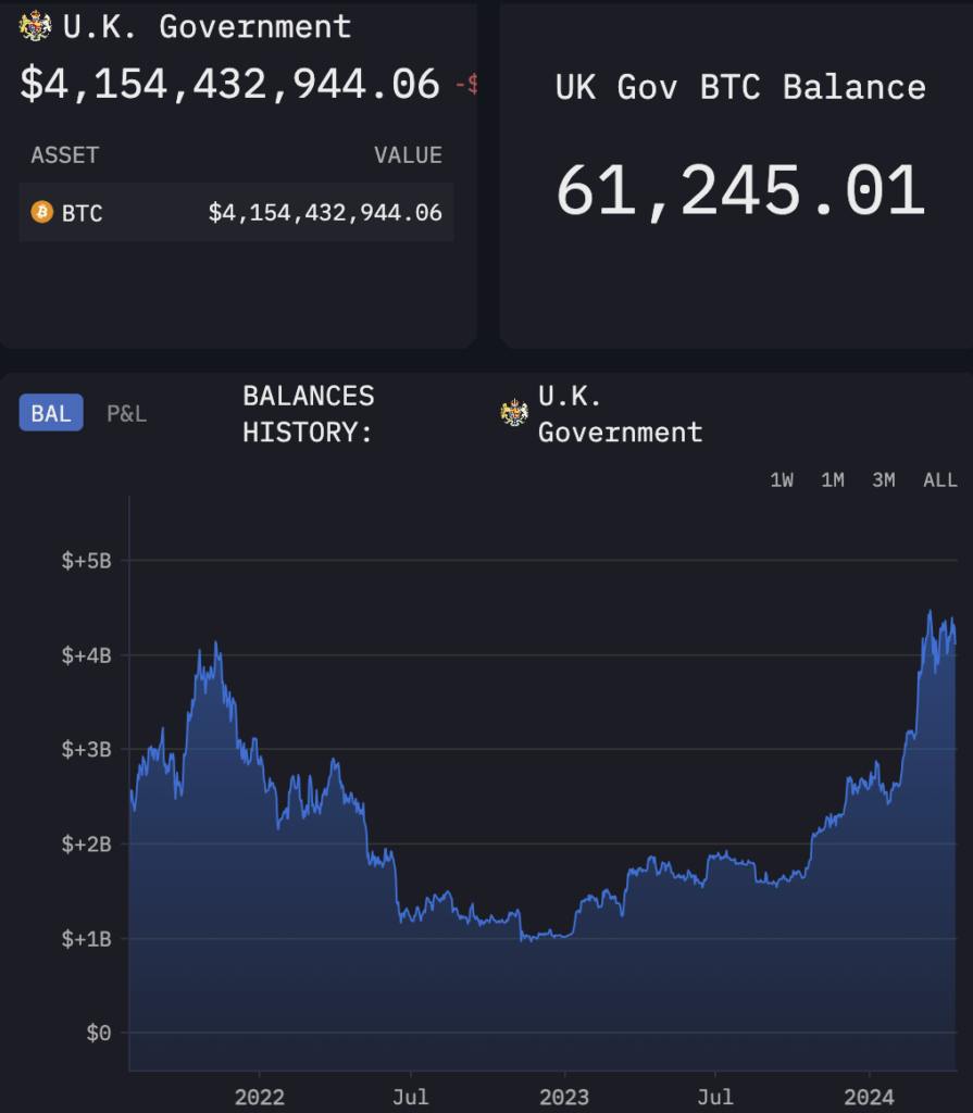 Theo sát phía sau Hoa Kỳ là chính phủ Anh – hiện nắm giữ 61.245 BTC, trị giá khoảng 4,1 tỷ USD.