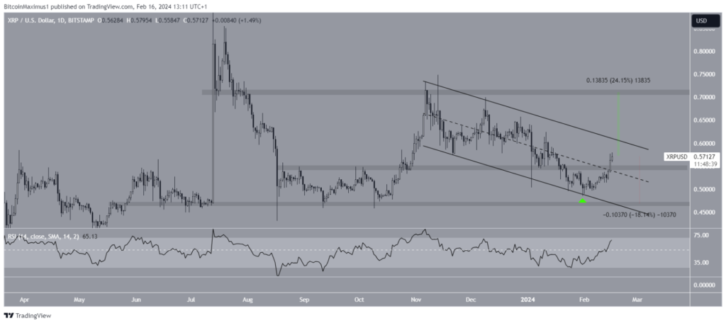 Nếu XRP bứt phá lên trên kênh, nó có thể tăng 25% lên mức kháng cự tiếp theo ở $0,70.