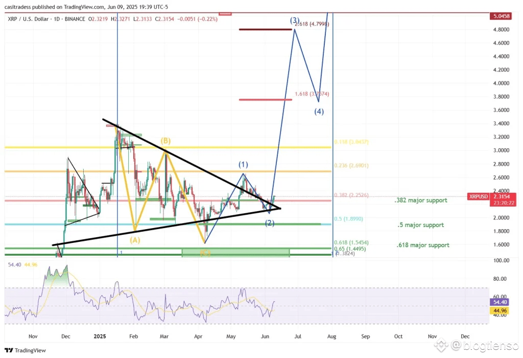 Theo một nhà phân tích , sau khi kiểm tra mức thấp gần $2,10–$2,20, XRP đã bật lại và hiện đang củng cố ngay trên $2,25. Giá đang di chuyển trong một mô hình chặt chẽ, với mức kháng cự tại $2,50 và $2,65. Một sự đột phá trên các mức này có thể đẩy XRP lên mốc $3,00. Một sự đóng cửa trên $3,00 sẽ xác nhận một sự đột phá tăng giá.
