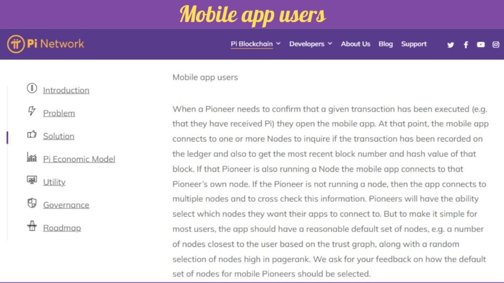 Khi Người tiên phong cần xác nhận rằng một giao dịch nhất định đã được thực hiện (ví dụ: họ đã nhận được Pi), họ sẽ mở ứng dụng di động. Tại thời điểm đó, ứng dụng di động kết nối với một hoặc nhiều Nút để hỏi xem giao dịch đã được ghi vào sổ cái chưa và cũng để lấy số khối và giá trị băm gần đây nhất của khối đó.