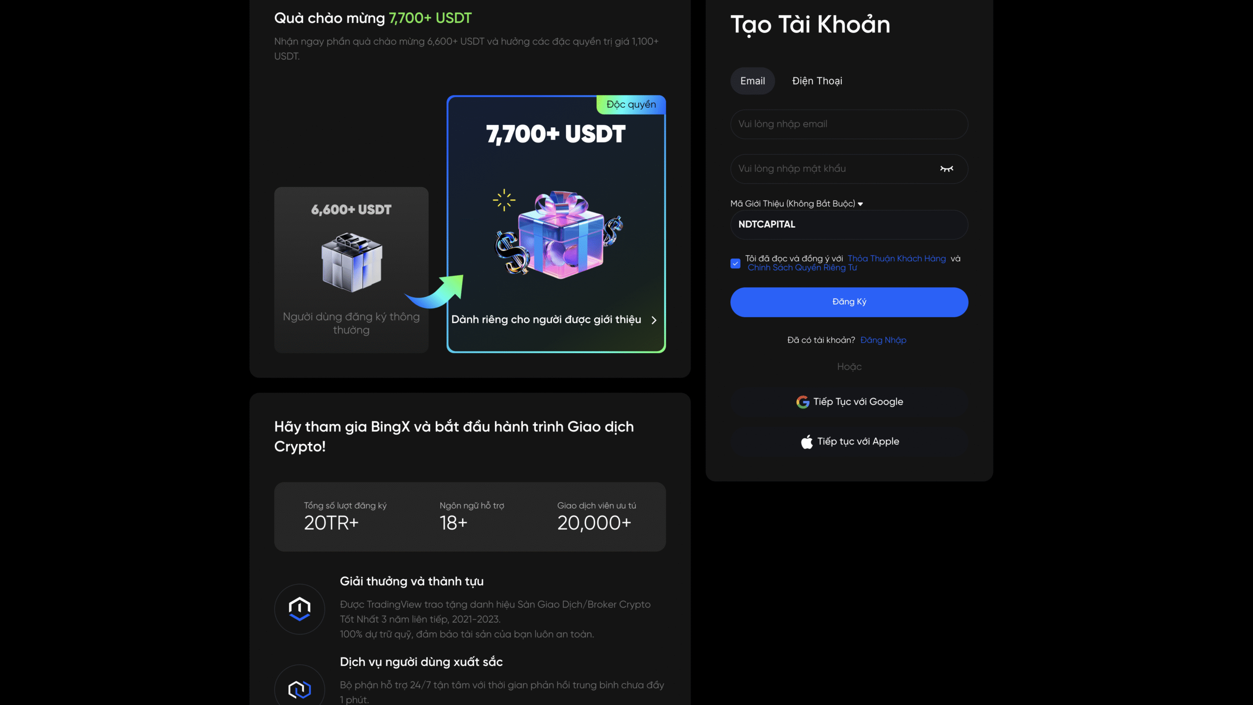 - Người dùng chưa có tài khoản BingX, đăng ký mới thông qua link giới thiệu của NDT Capital.