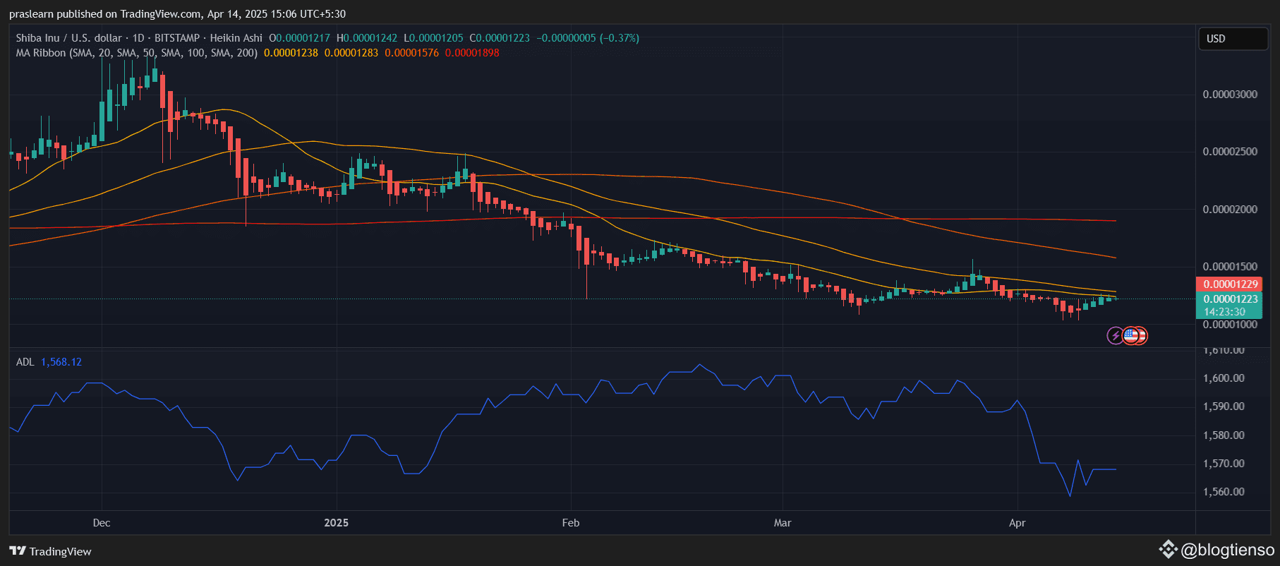 Trên biểu đồ hàng ngày, SHIB đã bị kẹt trong xu hướng giảm liên tục kể từ đỉnh cuối năm 2024, dần mất đà với các mức cao thấp hơn và mức thấp thấp hơn. Tuy nhiên, câu chuyện đó đang bắt đầu thay đổi. Trong vài tuần qua, SHIB đã cho thấy sự phục hồi nhẹ, đẩy trở lại vùng 0,00001200–0,00001230.